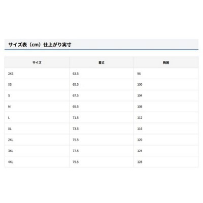サイズ 2XS/XS/S/M/L/XL/2XL/3XL/4XL(男女兼用)