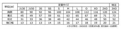 J130・J150・3S・SS・S・M・L・O・XO・2XO